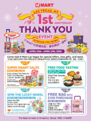 LAS VEGAS, NV – H Mart, the largest Asian supermarket chain in the United States, will celebrate the first anniversary of its Las Vegas location with a Customer Appreciation Event…