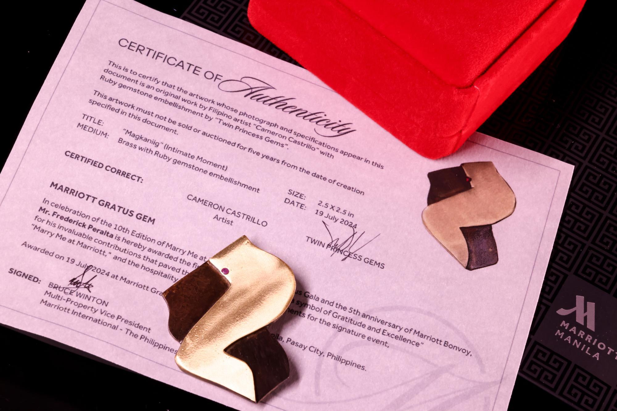 In a heartfelt tribute, the “Marriott Gratus Gem” a symbol of gratitude and excellence was launched to honor designers, event stylists, and partners who have contributed to Marry Me at Marriott over the past decade. Each of the awardee received a masterpiece creatively carved out by renowned visual artist and sculptor, Maestro Cameron Castrillo embellished with Twin Princess Gems’ Ruby gemstone, complete with certificate of authenticity.
