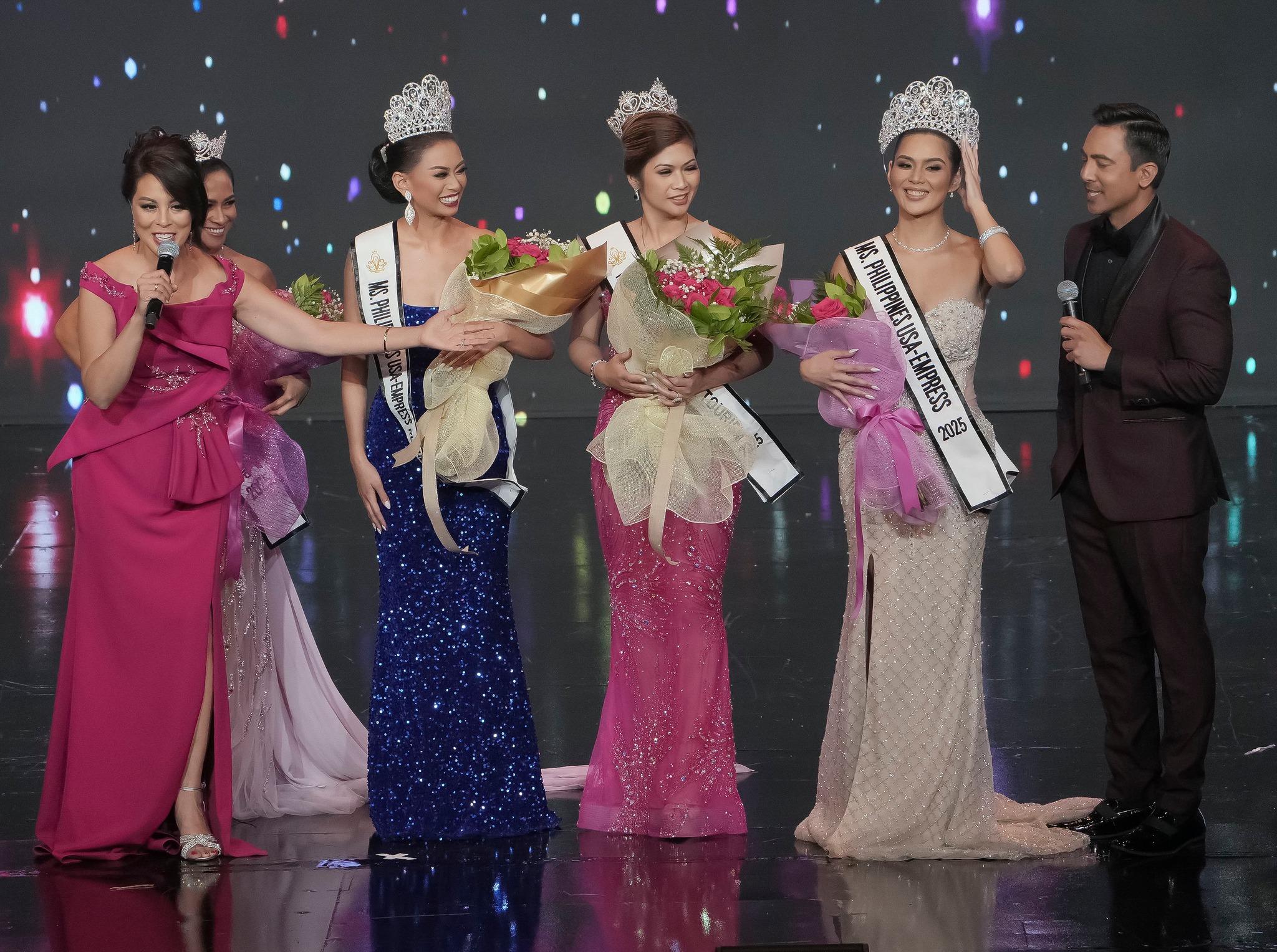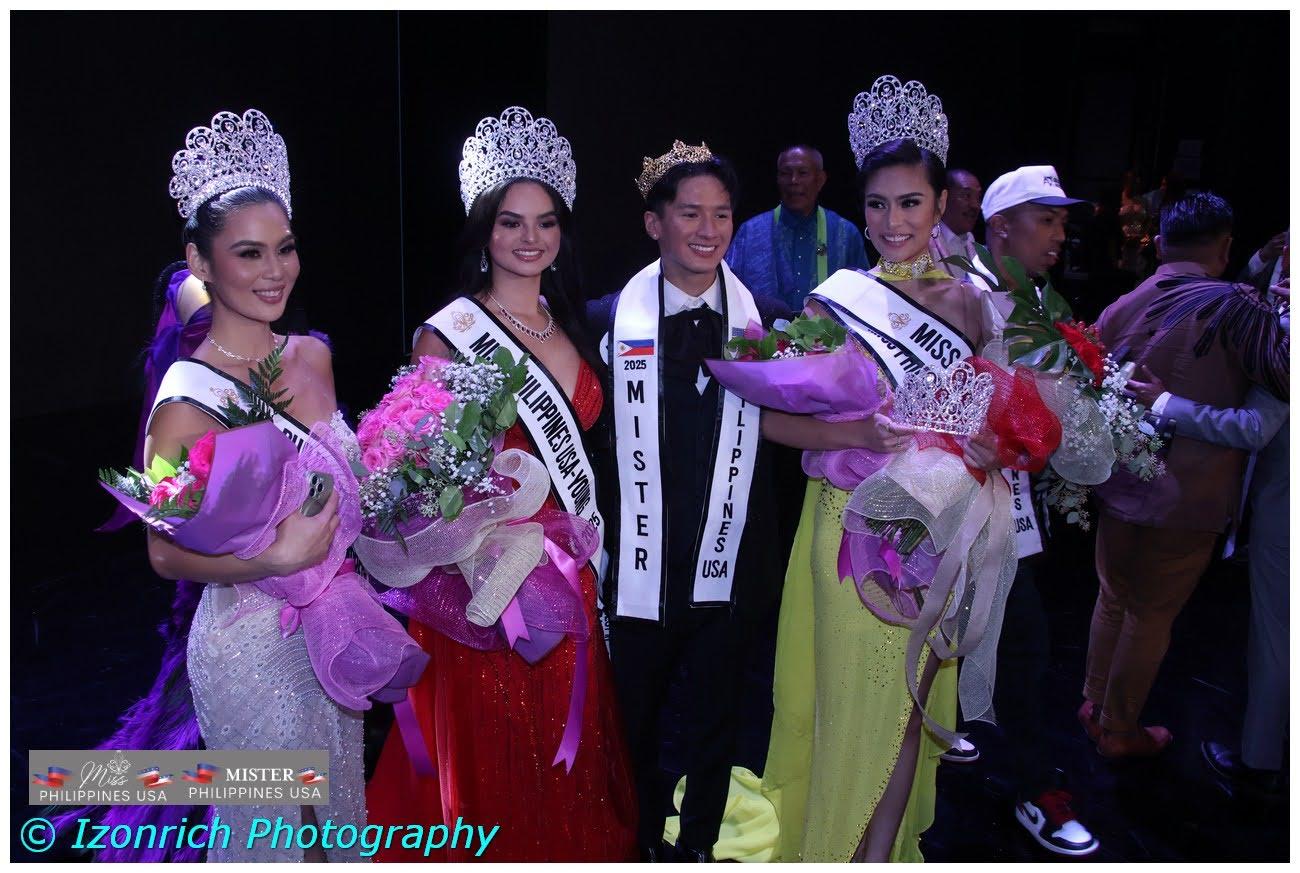 Royal courts were also crowned across all divisions, including Judimae Angcaco (Grand Ambassador, Miss Philippines USA), Erynn Padillo (Grand Ambassador, Miss Young Philippines USA), Lemuel Abelita (Grand Ambassador, Mister Philippines USA), and Irene Formentera (Tourism, Empress).