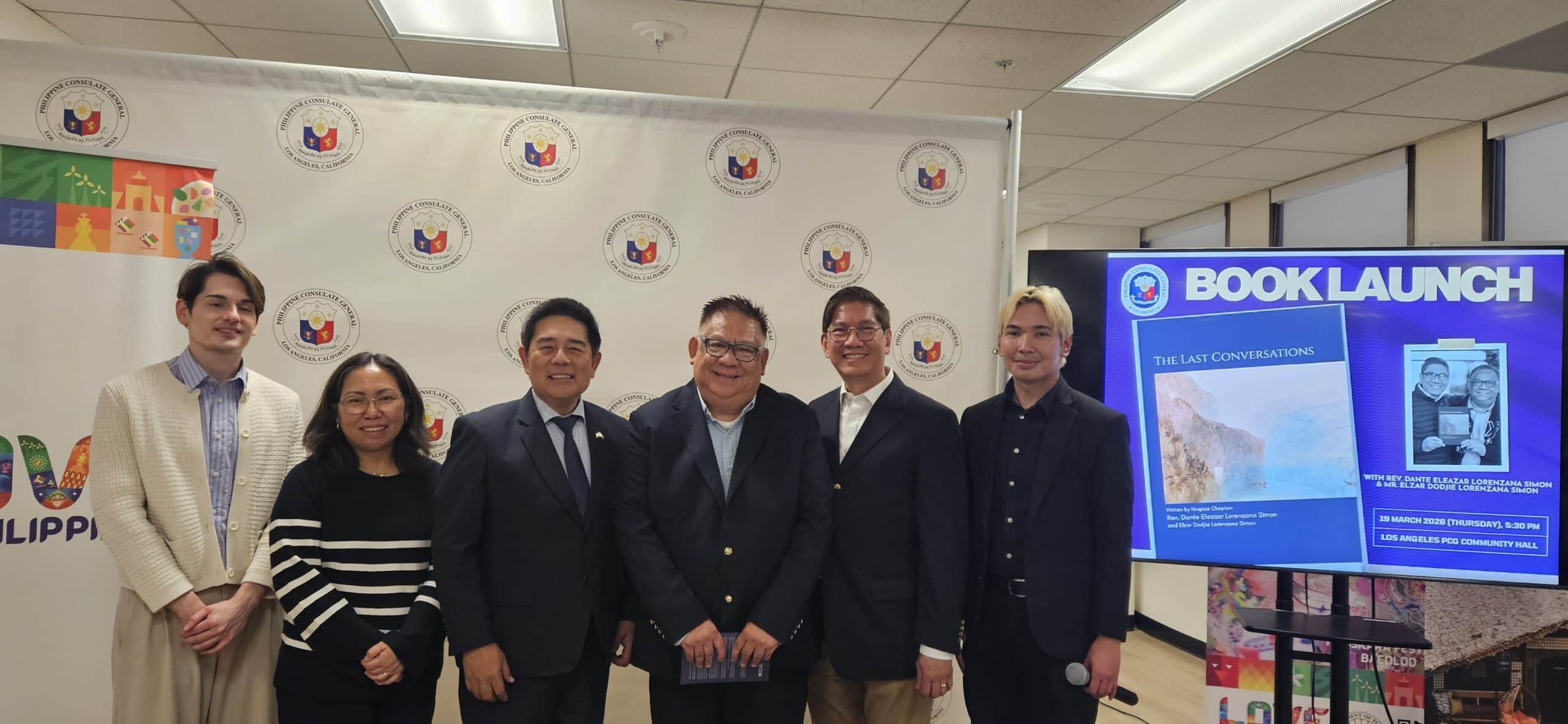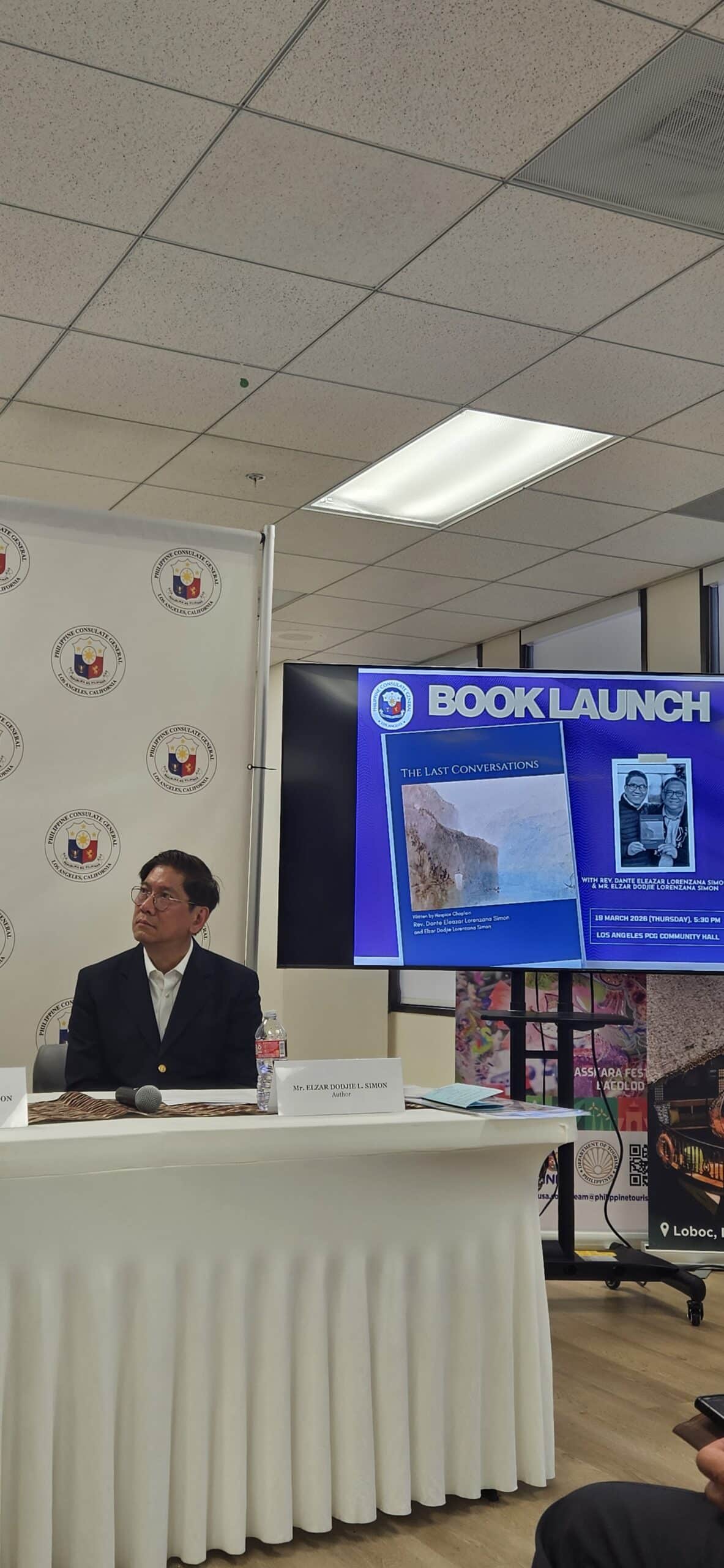 A book launch on The Last Conversations, written by Hospice Chaplain Rev. Dante Eleazar Lorenzana Simon and Elzar Dodjie Lorenzana Simon and edited by Dr. Elisa Simon and Elzar Simon, was held at the Philippine Consulate General’s Community Room in Los Angeles on March 19, 2026. Nearly a hundred folks attended.