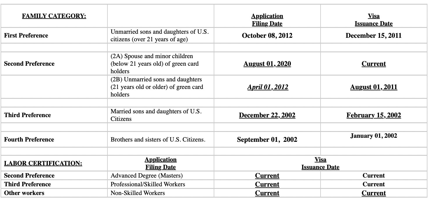 The October 2020 priority dates provide great news for workers in the EB-3 (skilled/professional) and “other worker” (unskilled workers like caregivers). The priority dates for all countries (except India and China) are CURRENT! This includes the Philippines!