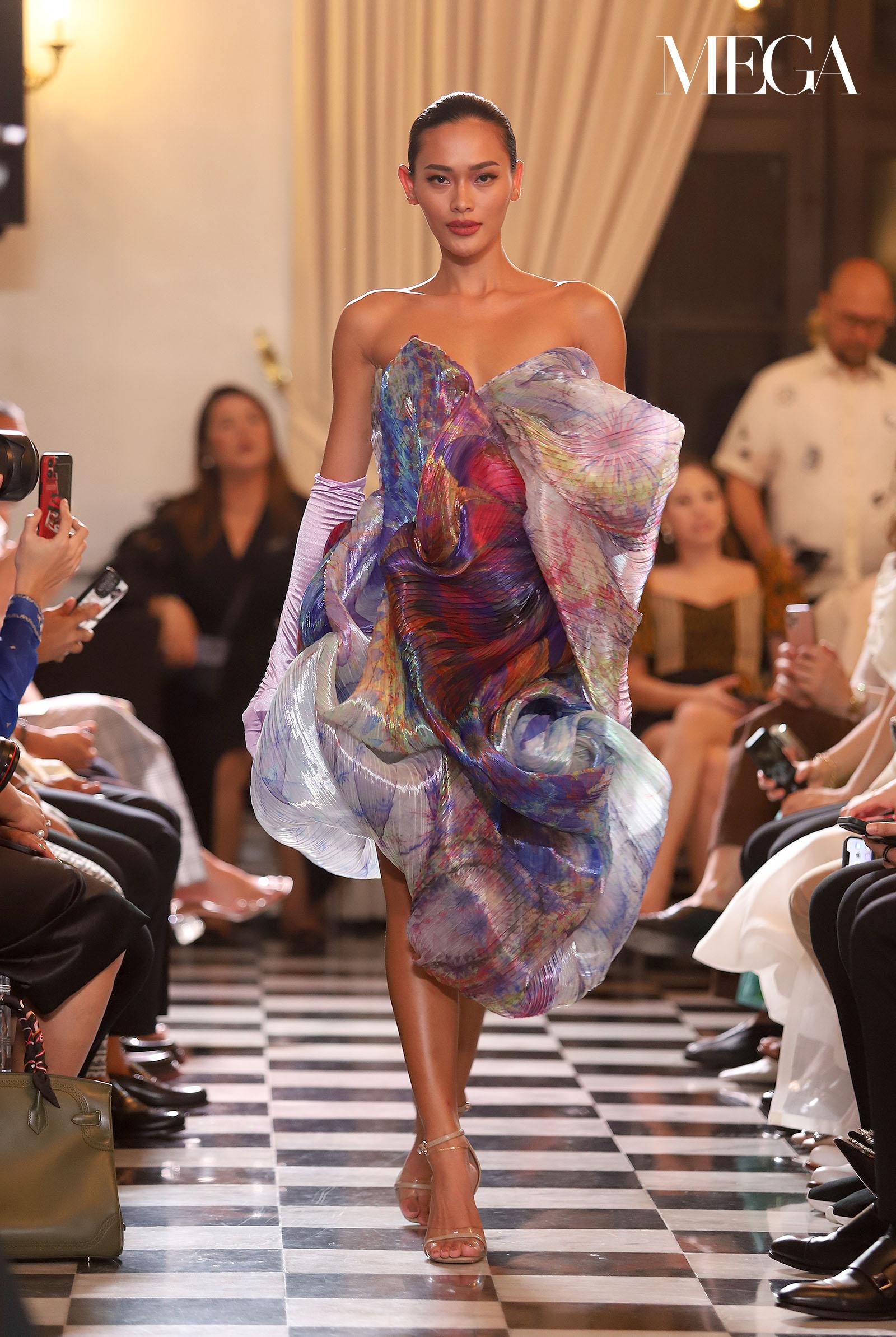 The couture collection, Quiñones revealed, would “highlight an array of intricate designs that celebrate both contemporary and Filipino traditional aesthetics, blending luxurious and local fabrics from the Philippines with bold colors. Expect to see pieces that embody elegance and innovation.”