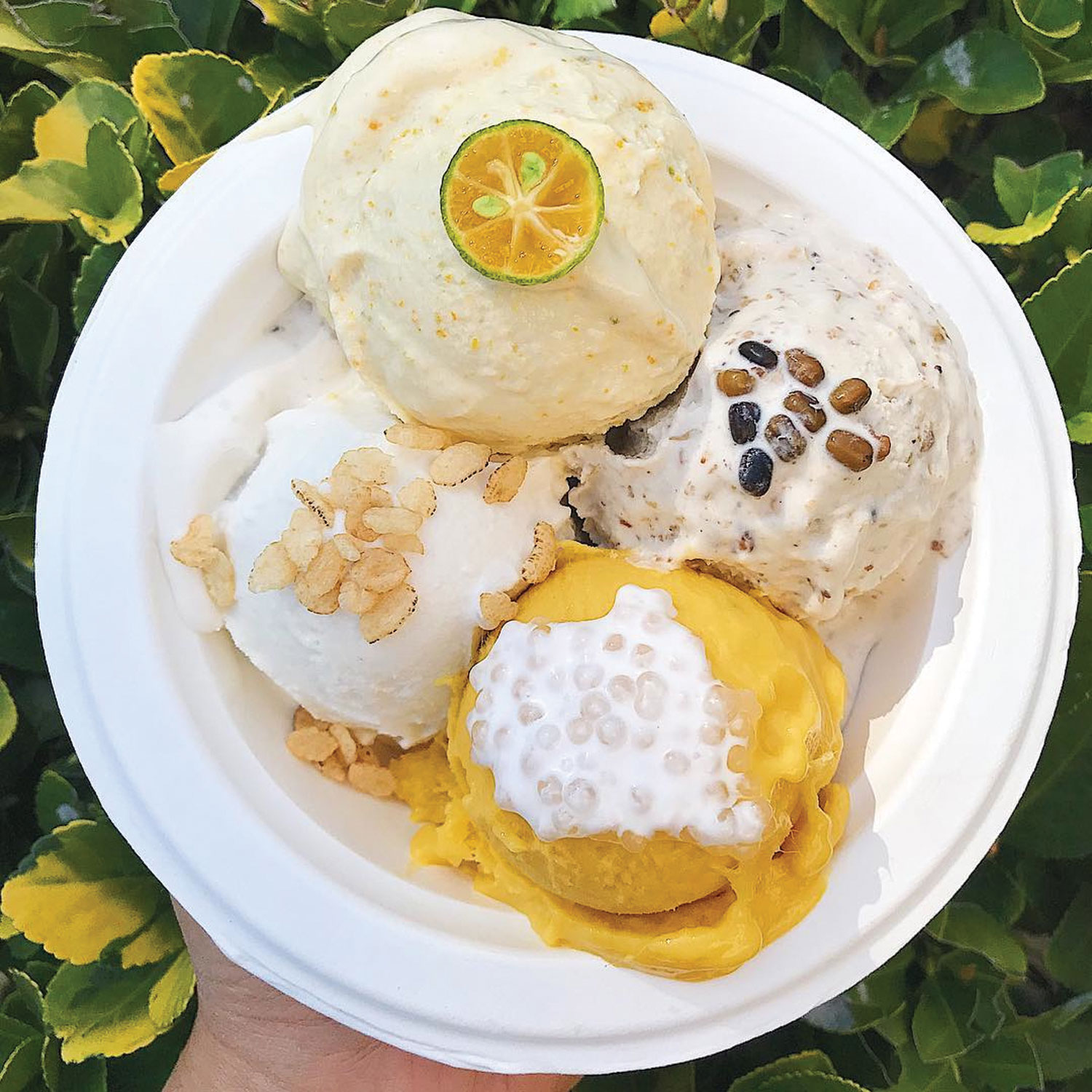 Showing her culture through dessert became that palpable route of sharing during her free time. The experimentation in late 2015 started at her childhood home in Pasadena, California, with making Filipino-inspired doughnuts, but getting the right textures proved to be a challenge. Then, came the idea of ice cream in its traditional formula with milk and eggs.