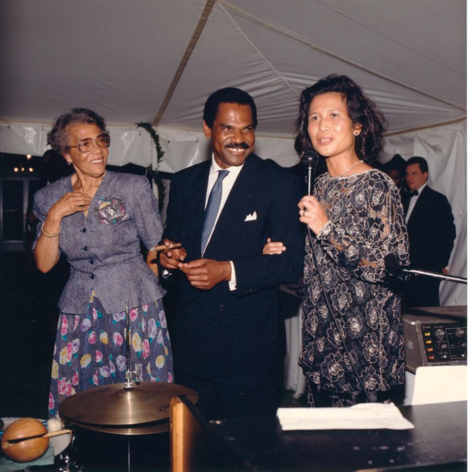 Carolyn Fuggett during her 80th birthday celebration, joined by her son, the late business leader Reginald F. Lewis, and daughter-in-law, Loida Nicolas Lewis, who delivered heartfelt remarks to honor the occasion.