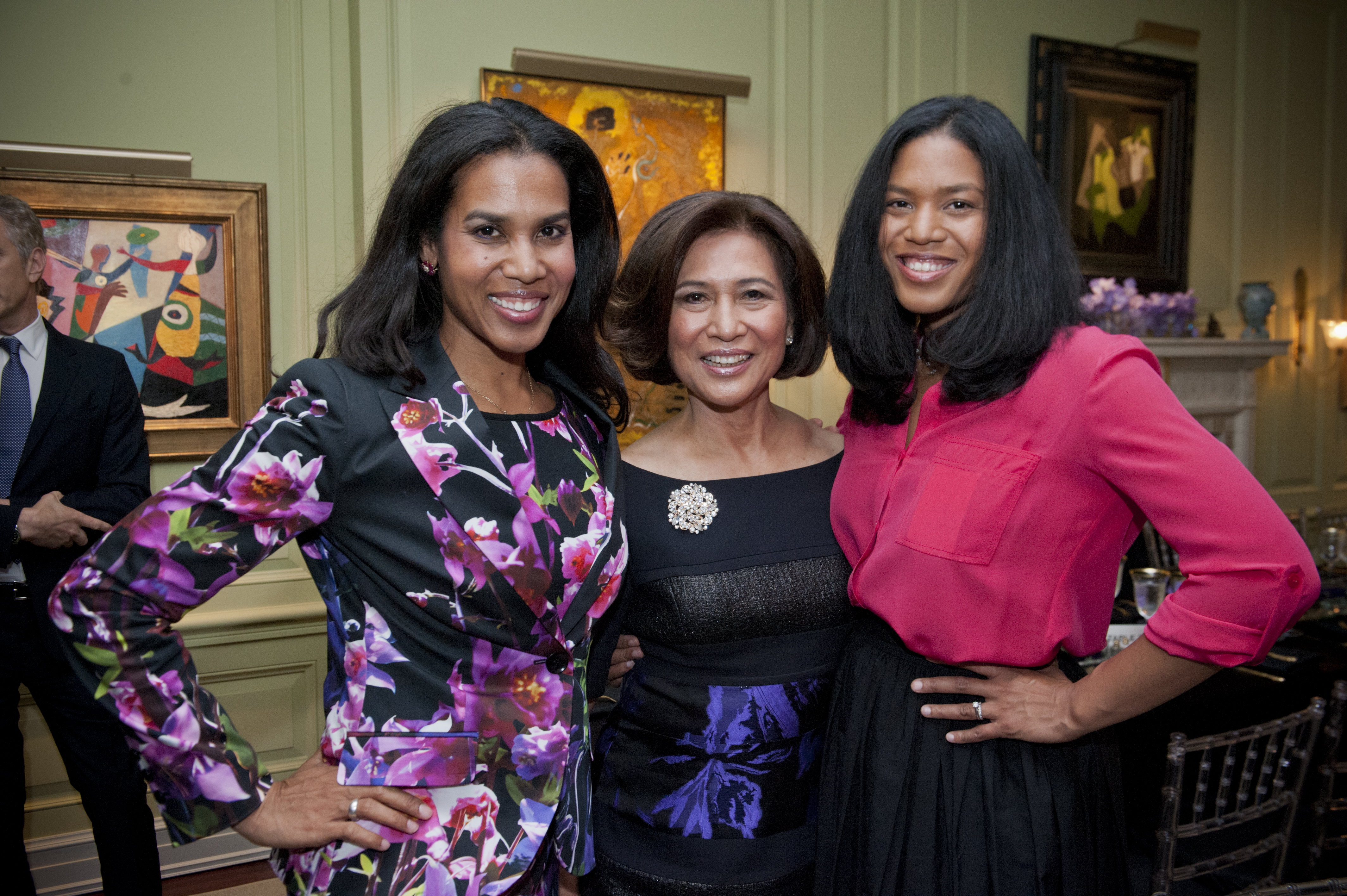 Loida Nicolas Lewis with her daughters, Leslie Lewis (left) and Christina Lewis Halpern (right), during a dinner with U.S. President Barack Obama at their Manhattan home in May 2015. (Photo: Beatrice Moritz Photography)