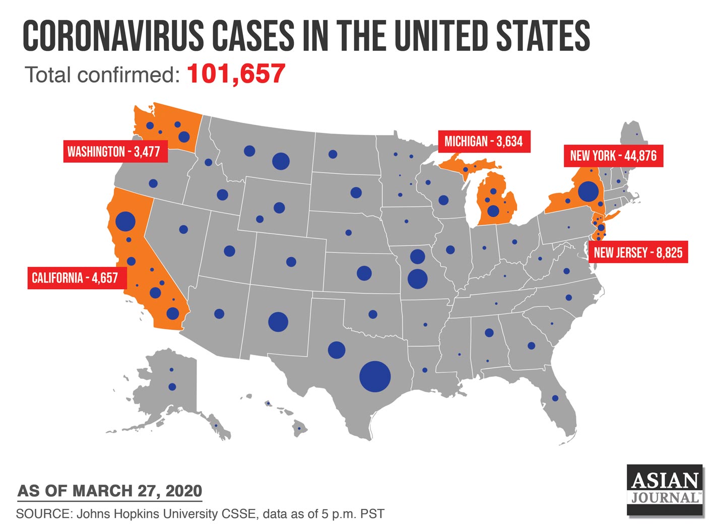 The United States now leads with the highest number of confirmed cases of the novel coronavirus (COVID-19), surpassing China and Italy.