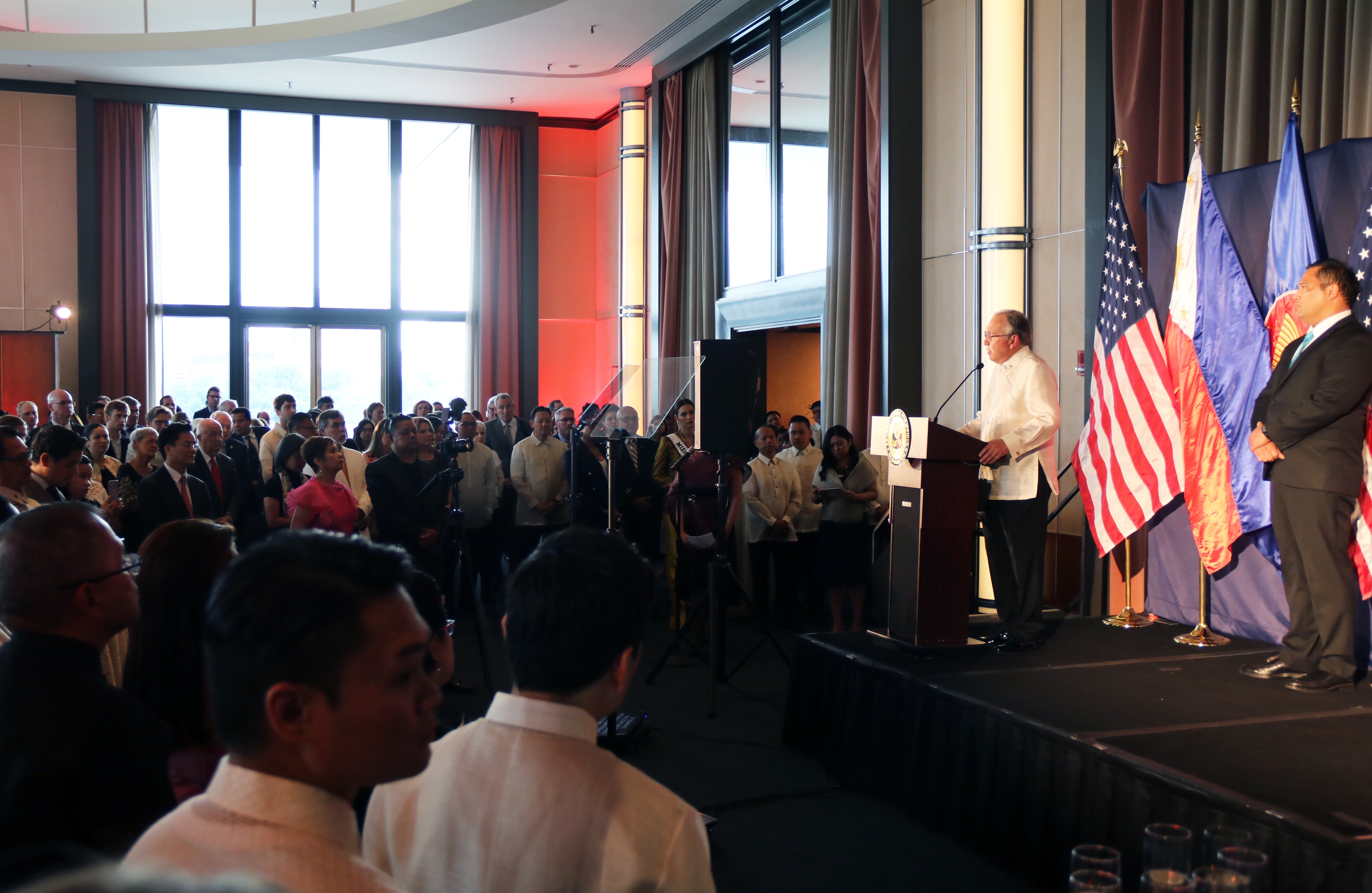 Filipino-American tenor Alan Palacios-Chan performed a heartfelt rendition of the Philippine and U.S. national anthems to start the reception program.
